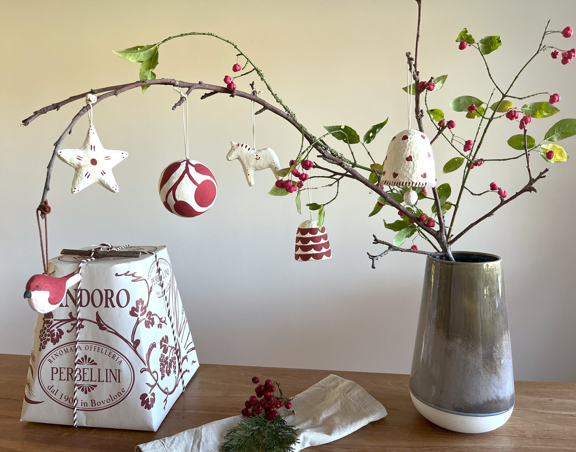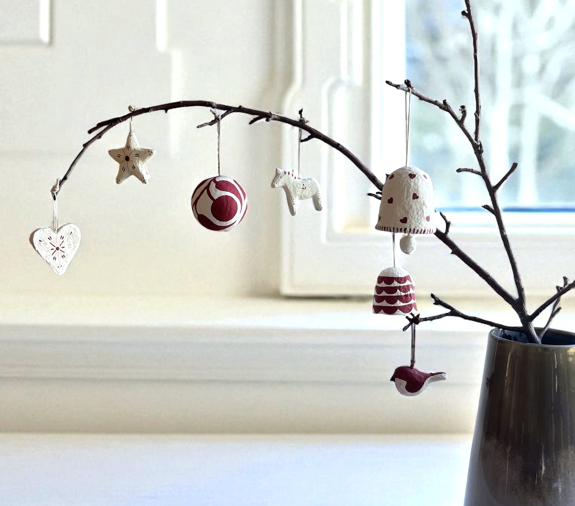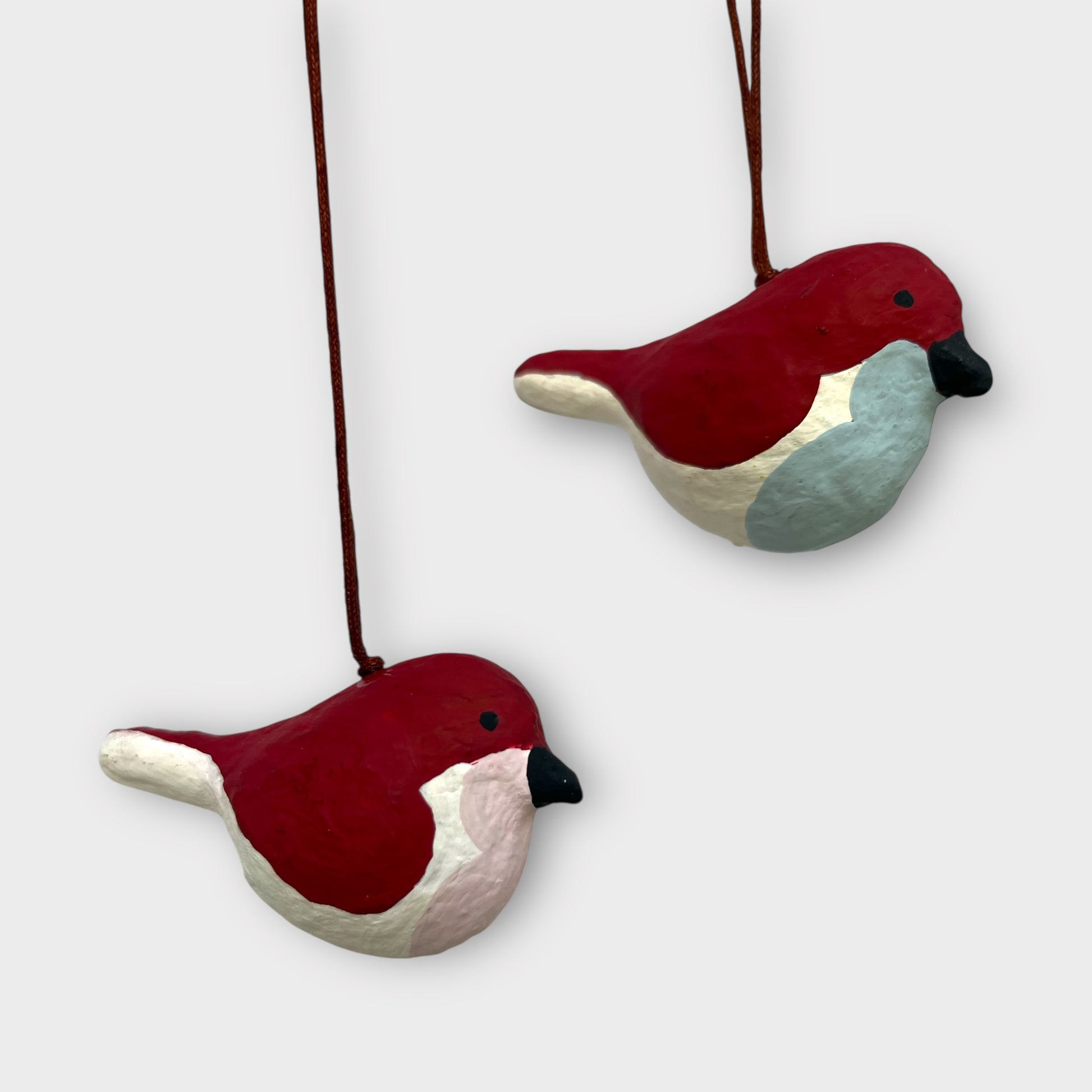 Sæt af to håndlavede fugle i lyserød og lyseblå – perfekte som dekorative ophæng på grene, juletræet, i vinduet eller som del af en poetisk helårsudsmykning. De bløde former, mørkerøde hoveder og fine farvedetaljer giver et let og naturligt udtryk.
