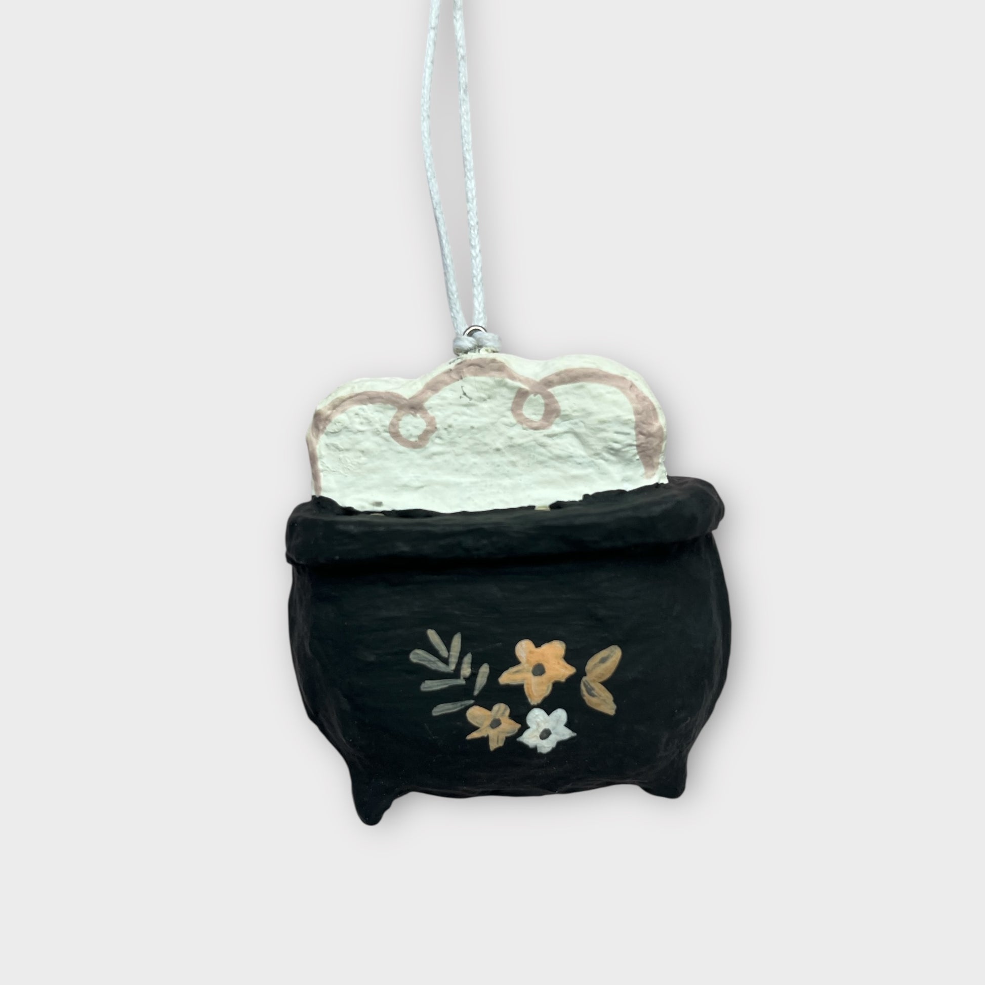 Sort heksesgryde med håndmalede detaljer – skaber hyggelig hekse-stemning til Halloween.