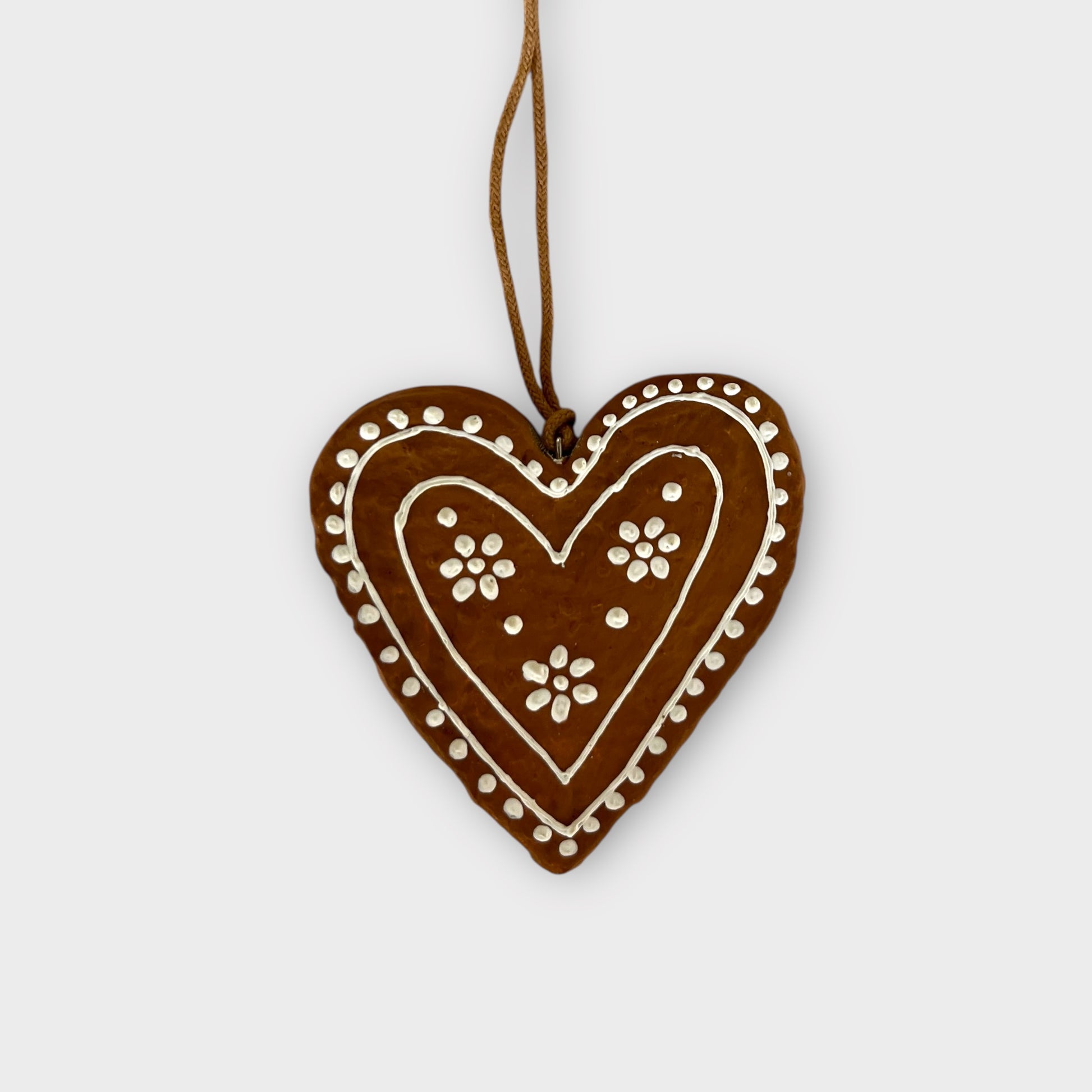 Hjerteformet honningkage – klassisk motiv i julepynten.