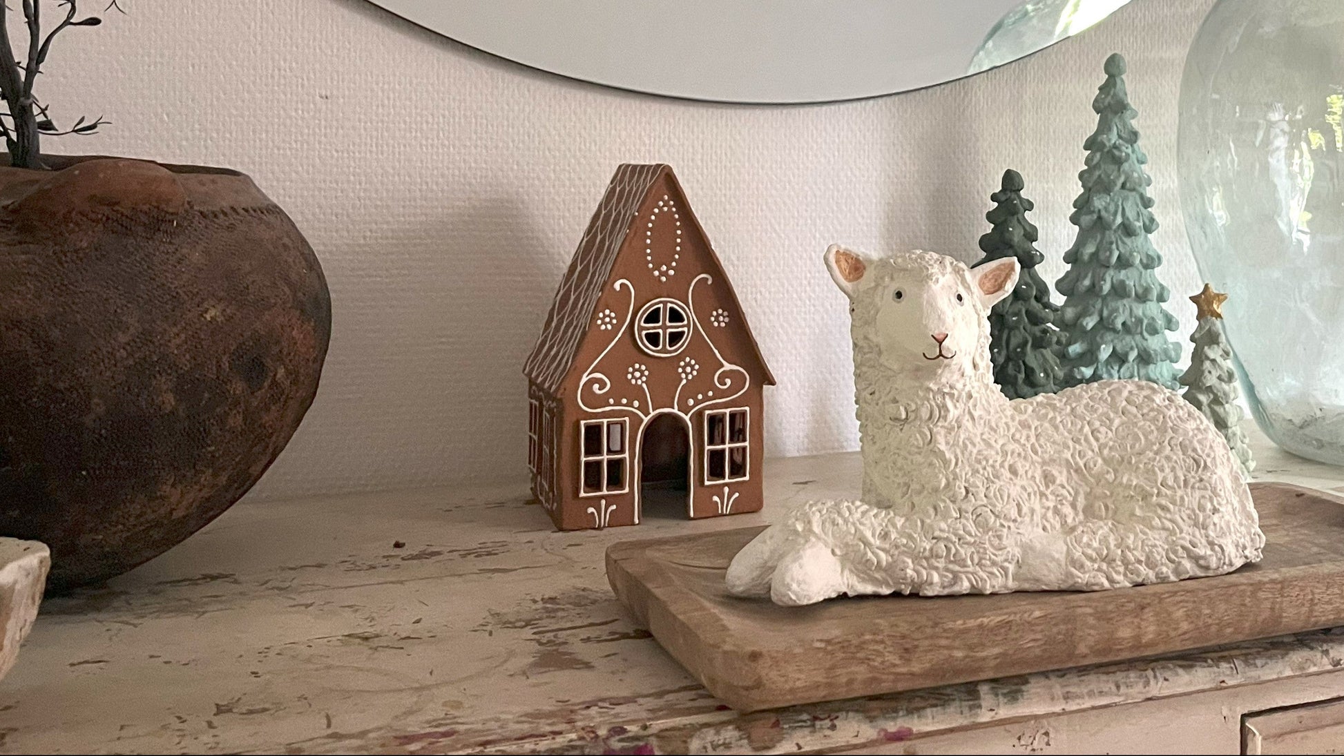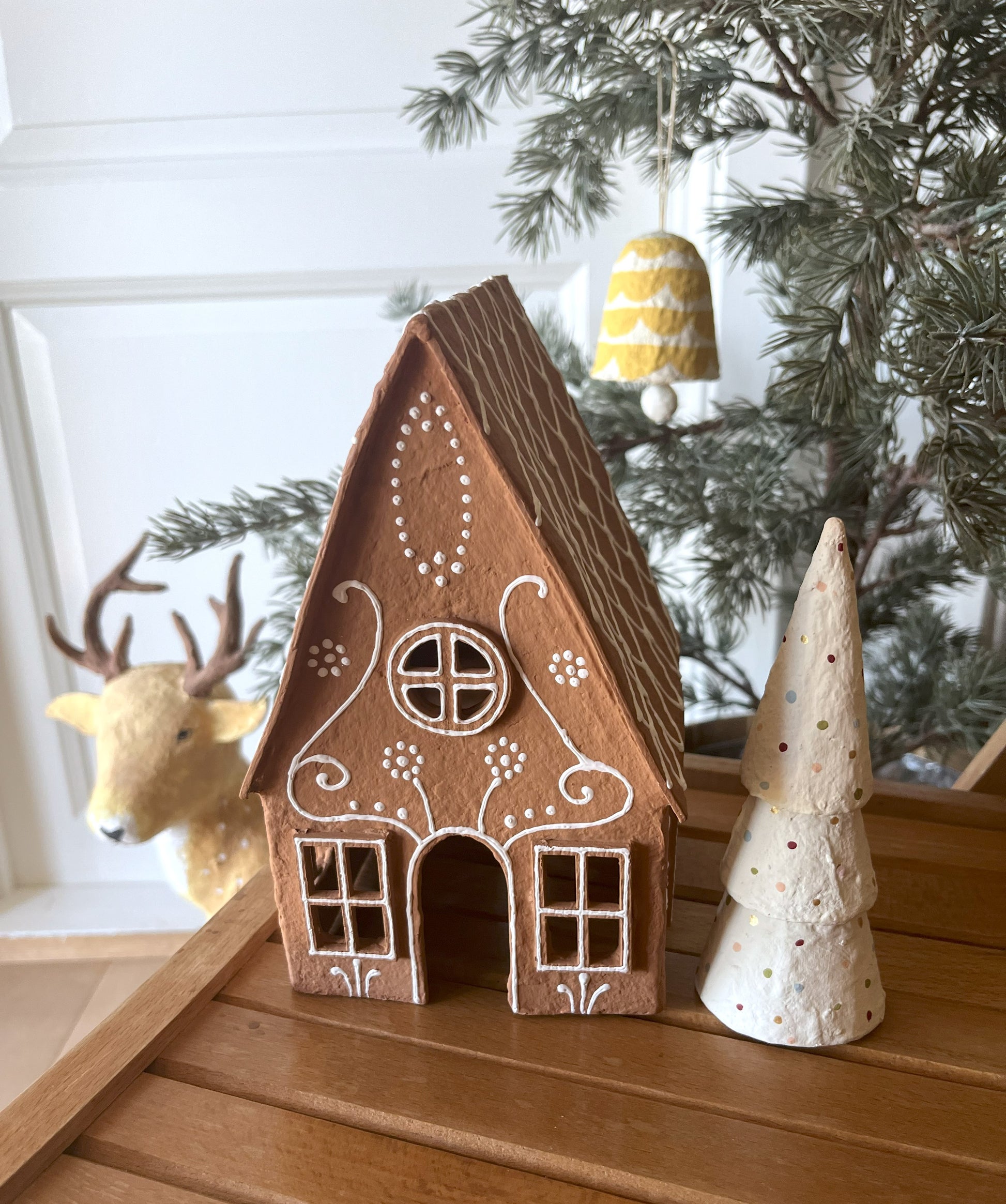 Stort honningkagehus med fine håndmalede detaljer – hyggelig julestemning til ophæng eller pynt - man får næsten lyst til at sætte tænderne i det lækre kagehus.