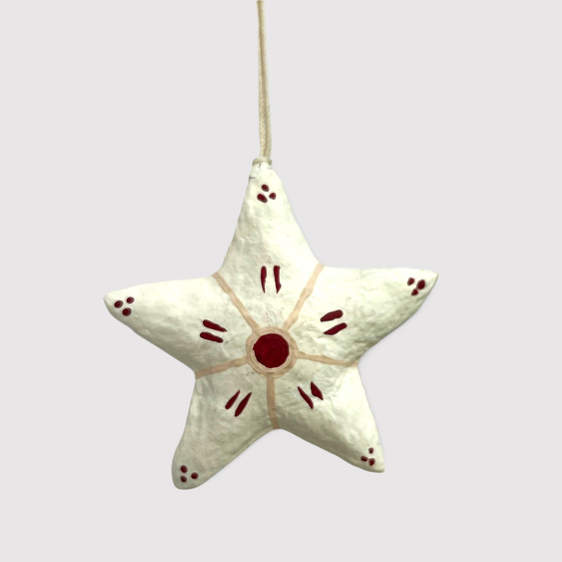 Stjerne med rødt mønster – enkel og elegant julepynt.